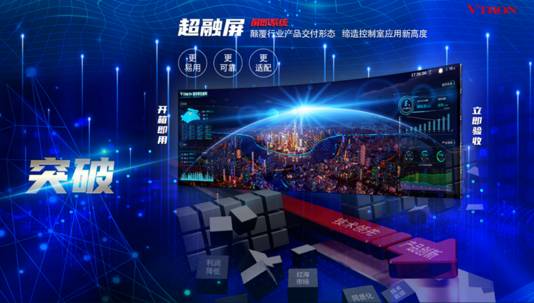 VTRON提供的大屏幕拼接显控产品及其解决方案,可根据不同客户的应用场景,通过各种屏幕(端),利用网络和各种应用(企业云),将信息、交互、协作整合在一起,满足用户信息智能化显示与控制的需求。